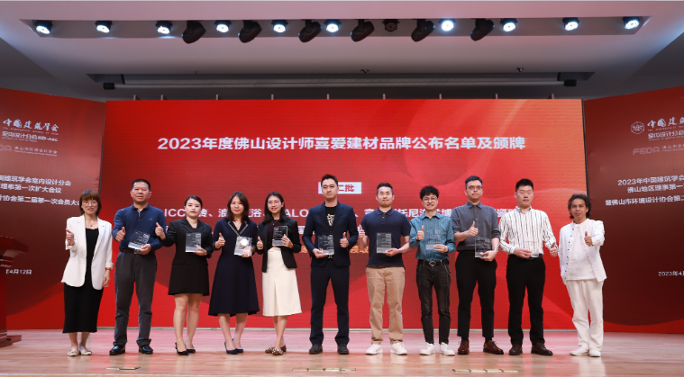 最后,会议颁发了“2023年度佛山设计师喜爱建材品牌”,为数十家新生活联盟企业代表进行颁牌。